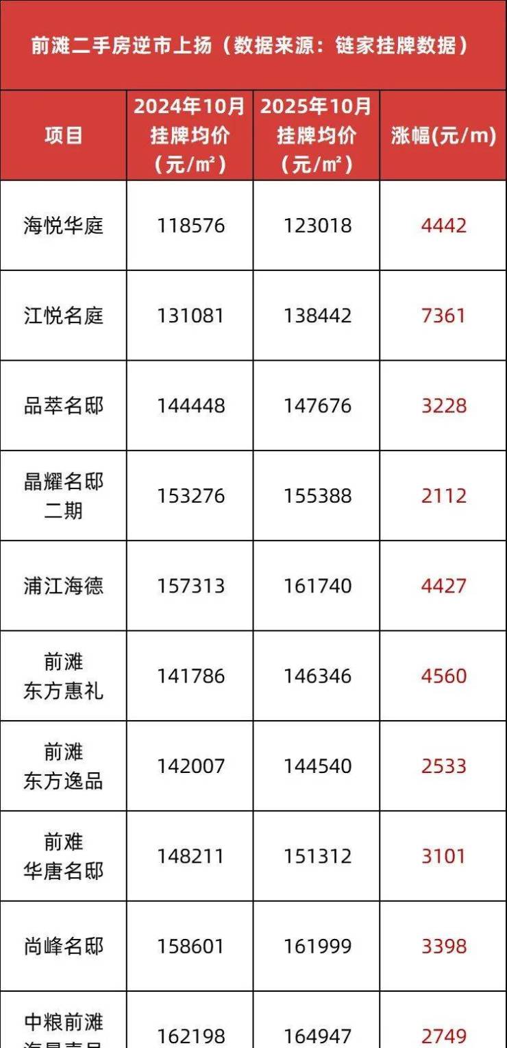 前滩滨江,正持续吸引全球眼光与资本,高净值人群正以实际行动在此“投票”。在2025年,整个前滩滨江范围里,二手房逆势上扬,数据显示,成交量已经突破200套,仅次于2020年最高点!就在11月,前滩东方逸品成交1套房源,成交单价来到了14.14万,同比上涨!
