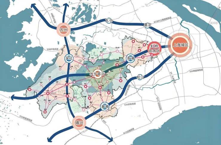 青浦新城西接长三角一体化势能,串联江浙腹地,东接大虹桥澎湃势能,作为连接长三角一体化示范区与虹桥国际枢纽 2.0(“大交通”、“大会展”、“大商务”、“大科创”)的重点城市,坐享两大国家级重磅规划,区域腾飞指日可待。