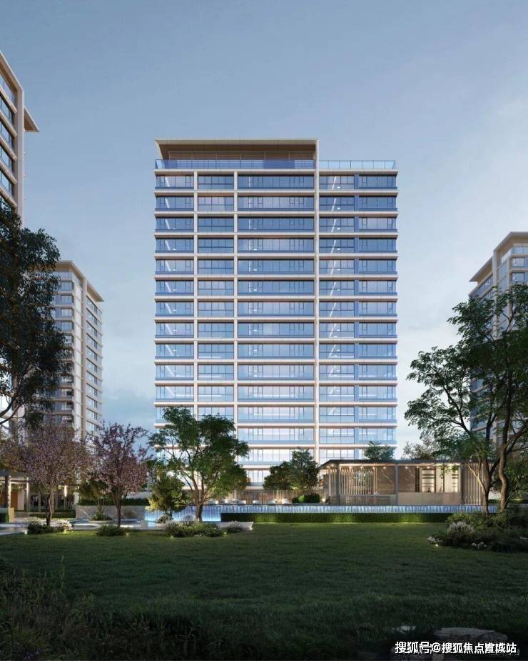 【建筑风格】现代简约风,外立面采用大面积玻璃加铝板,打造非对称L型立面,材质造价更高,抗腐蚀性程度更高。