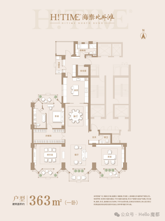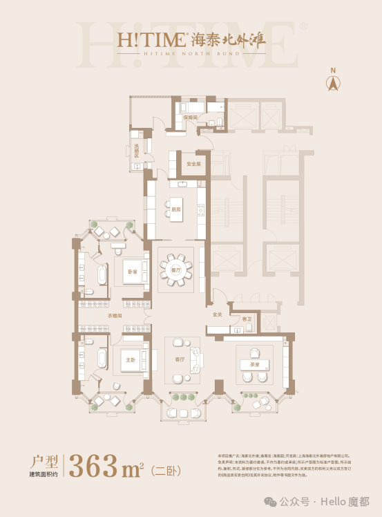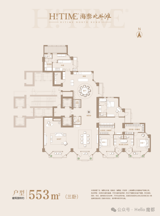 项目南侧一栋住宅户型呈金字塔造型,四间套房,超大客餐厅,充分利用南向面宽,360°采光不浪费一丝一毫江景。每个房间都有超大阳台,阳台外设置阔绰花池。南侧塔楼顶部设计了一座停机坪,这是上海首个也是目前唯一设计顶楼停机坪的住宅。北外滩将按照“最高标准、最好水平”的总体要求,打造以“世界级会客厅”和“具有全球影响力的世界级滨水区”。