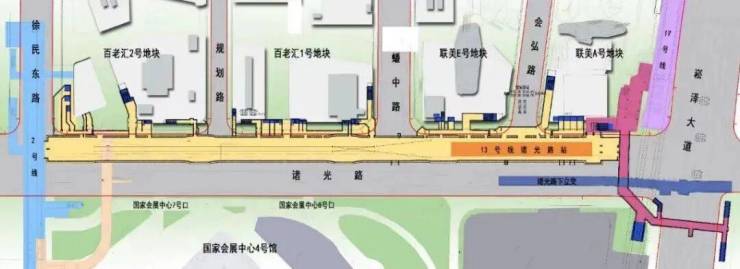 值得关注的是,13号线西延伸诸光路站,与2号线徐泾东站换乘通道开始招标,这意味着诸光路站未来将有17、2、13号线三轨换乘。