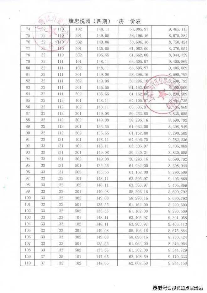 华府天地一房一价表: