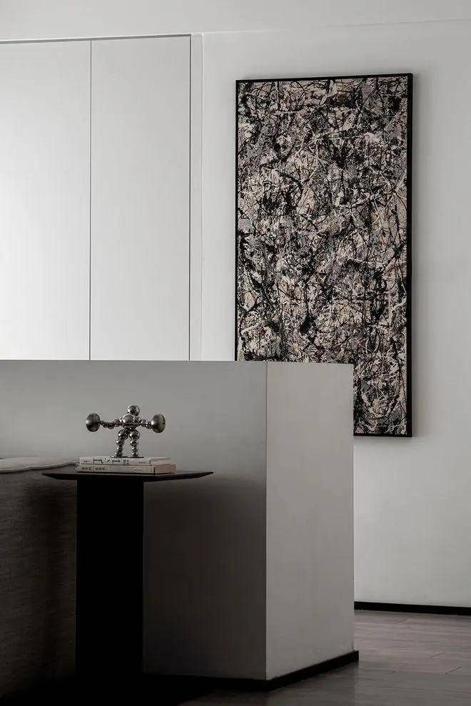 步入这个家,你首先会被一道独特的光影秀所吸引。仿岩板的装饰画如同天然的画屏,巧妙地引导着光线,让每一寸空间都沐浴在柔和而温暖的光影之中。这不仅仅是一种装饰,更是一种生活态度的展现,艺术与生活的交融在这里达到了完美的境地。