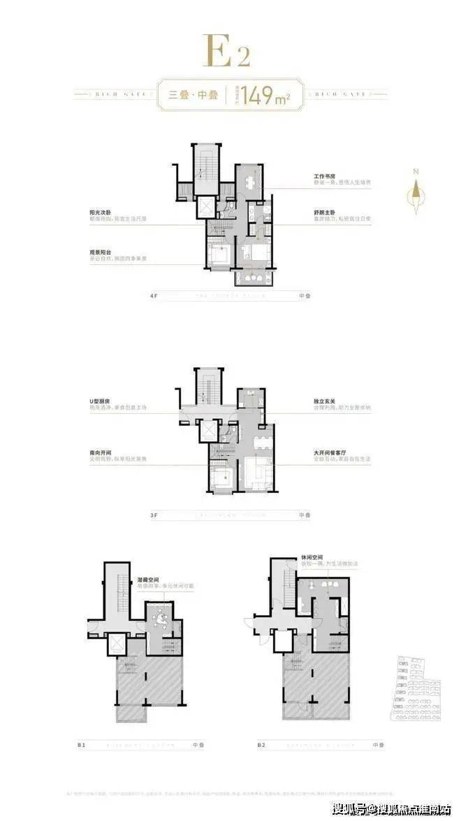 中叠的4房户型更加亮眼,不仅拥有北向的入户花园,而且还拥有两层地下室,享受叠般的居住体验;
