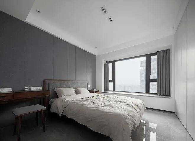 卧室的设计同样大胆创新,我们采用了极简的设计理念,将床和床头柜都进行了重新设计。床头柜采用了悬挂式设计,既节省了空间,又增加了收纳功能。床则采用了极具设计感的悬浮式设计,搭配舒适的床垫和柔软的床品,让人在休憩中享受到极致的舒适和放松。