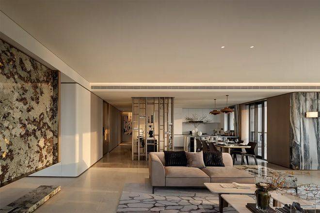 东滩·海上明月外立面甄选天然石材与金属铝板,以匠心比例构筑质感立面;全景玻璃阳台消融内外边界,纳景入室,更引自然光影流转。项目通过每处细节的匠心设计、精准把控,不仅营造出精致高雅的观感,更让健康、舒适生活具象化。