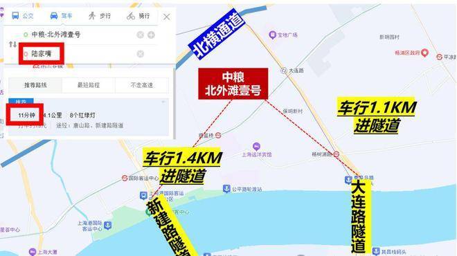 自驾也相当方便,项目往北方向就是北横通道,往南车行方向就是新建路隧道和大连路隧道直达浦东。从项目到陆家嘴、北外滩和外滩都很便利(百度地图测量)。