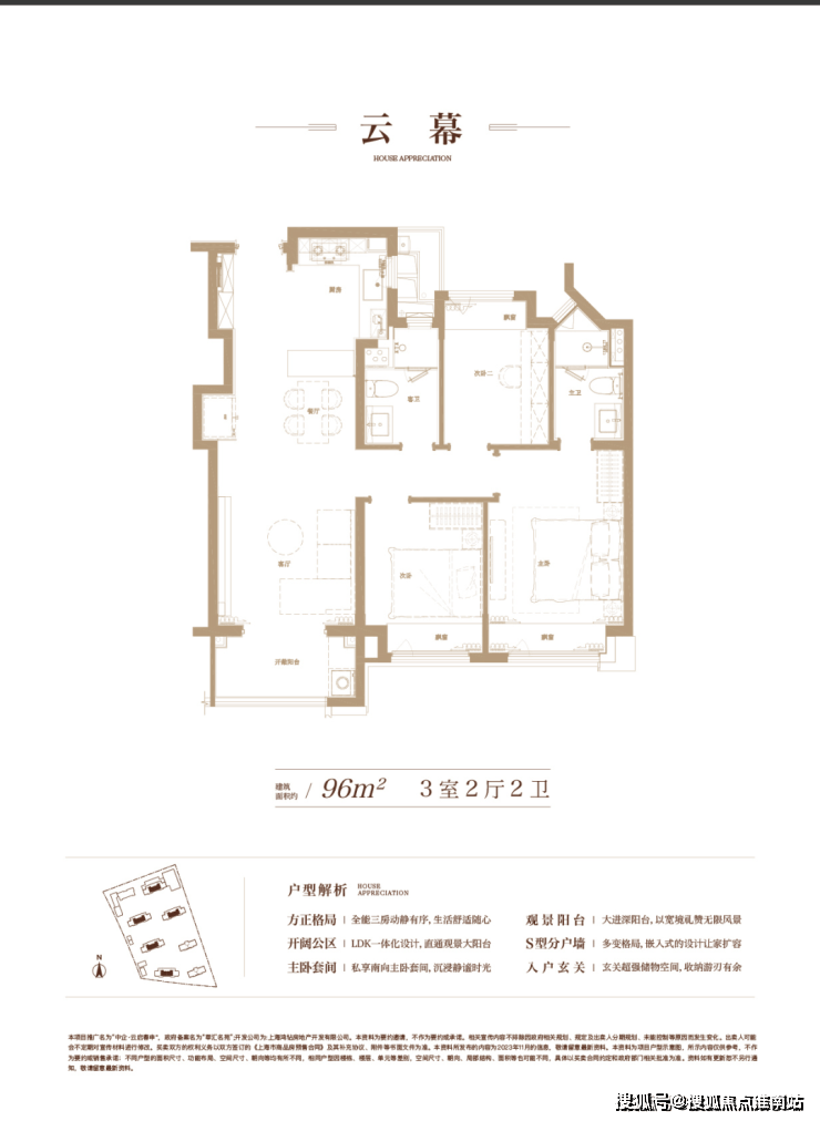建面约96㎡3房2厅2卫▼