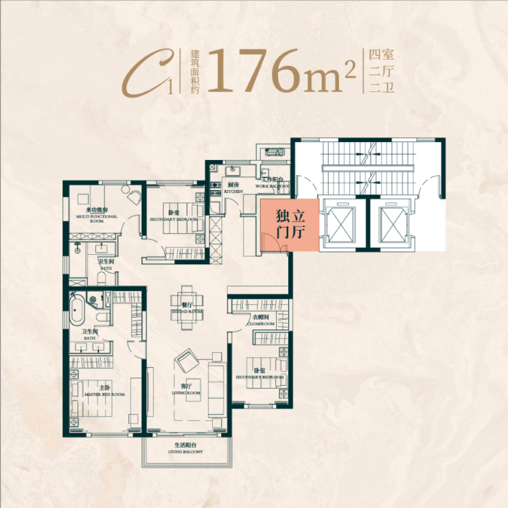 建面约176㎡4房2厅2卫:☮🔥昌平云岸售楼处电话:400-8787-740👈🔥