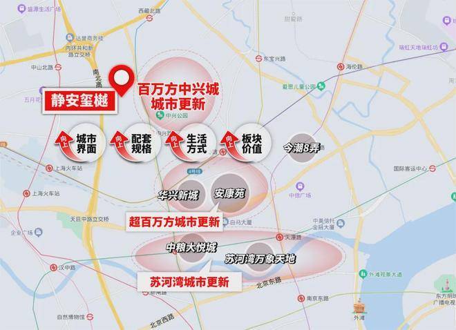 商业方面,项目1公里范围内有静安大悦城、万象天地、凯德虹口商业中心、百万中兴城商业(在建中)、珠江安康苑的商业合生汇(在建中)等大型商场。