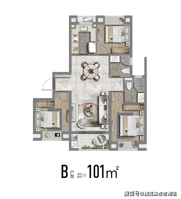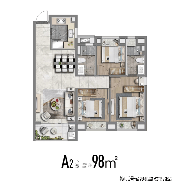 正三房设计 , 无论是98㎡精奢三房,还是113㎡舒适性三房,空间的尺度感十足,坚持不缩水。从主卧、到老人房、儿童房,每个人都有自己独立的空间。