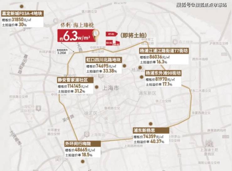 而5月14日上海市土地交易市场发布宝山区W12-1301单元90-01、91-01、92-01、93-01、94-01、87-01地块挂牌,地块起拍价81亿,起拍价对应的可售商品住宅整盘微利售价6.3万/㎡,若以当前市场30%溢价率来算,对应的可售商品住宅整盘微利售价将直冲7.9万以上/㎡,中环旁大四房总价更是轻松破千万!