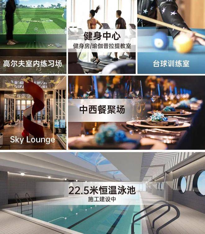 对标5000万级顶豪的3500㎡会所, 空中露台、Sky Lounge、22.5米恒温四季泳池、室内高尔夫练习室……妥妥的都会精英高端社交场。