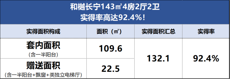 而本案的实得率大约为92%!最终143㎡户型到手约131.6㎡!