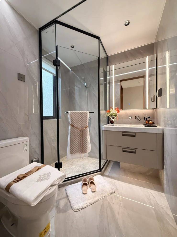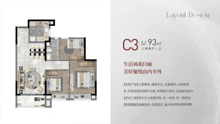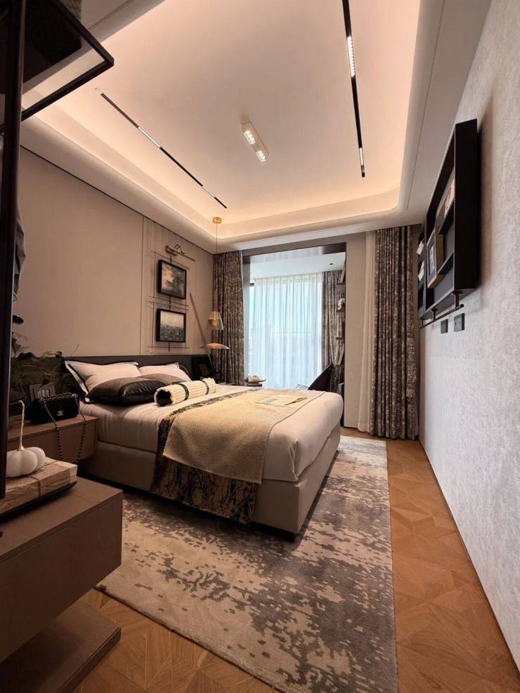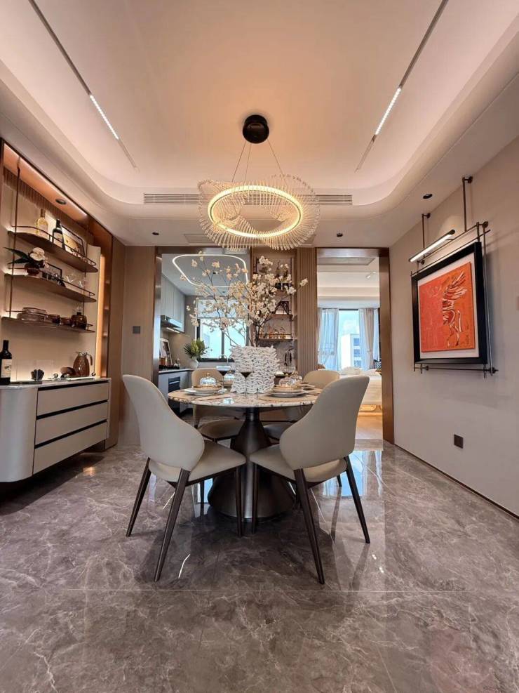 客餐厅相对独立,客厅+次卧南连约6.7米宽景阳台,餐厅北连大飘窗,层高3米,室内空间尺度瞬间体现出来;