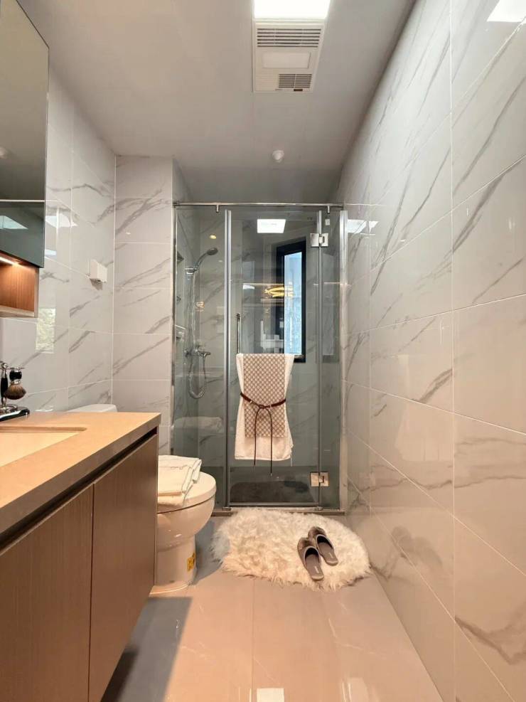 客餐厅一体化,且空间相对独立,客厅南连宽景阳台,加上层高均3米,尺度感和空间感铺展开来;