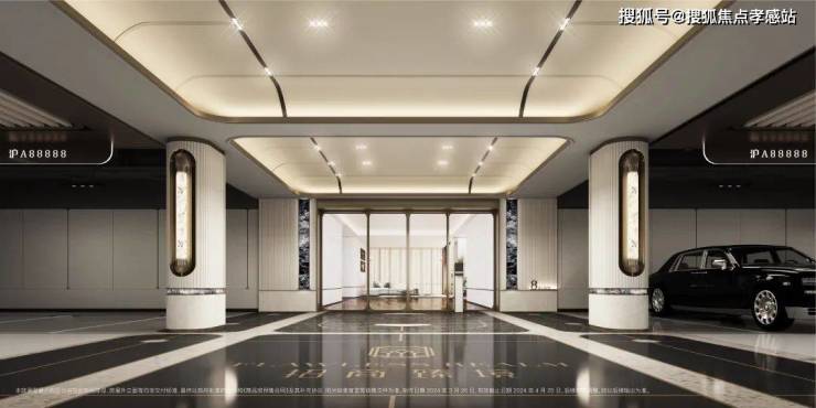 酒店式门廊作为归家的第一道风景,招商臻境以空间大尺度与高级奢石的材质使用将尊崇的归家礼遇感拉满。近50米宽,高度约5.3米高,开口约11米长的高规格酒店式大门。选用了贝金米黄石材作为墙面主材,墙裙用印度蓝石材做装饰。两侧甄选了两颗名贵的罗汉松,有着恭迎归家的美好寓意。