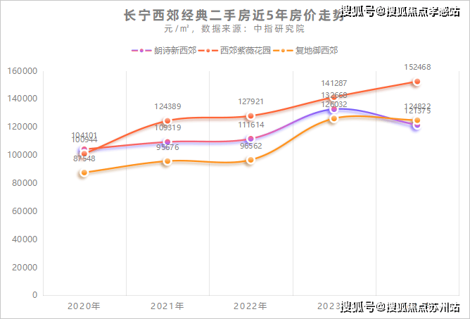 长宁西郊三盘,年代接近的西郊紫薇花园和复地御西郊,西郊紫薇花园的成交涨幅速度明显较大,且一路呈攀升趋势;地段上只隔了一条马路的朗诗新西郊,年代更近,但涨幅也比不上西郊紫薇花园。