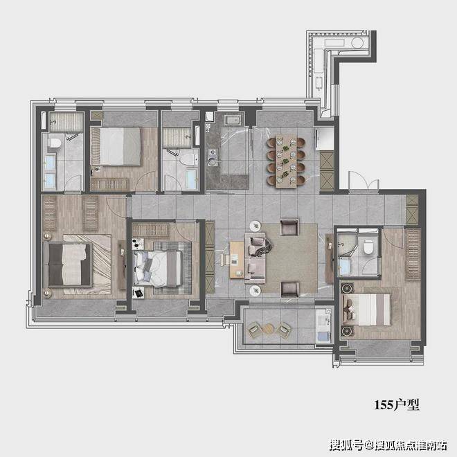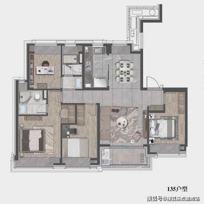 该户型贴合当代人居生活习惯,既适合三口之家小太阳家庭,也可以是三代同堂,每个人都能拥有独立空间.