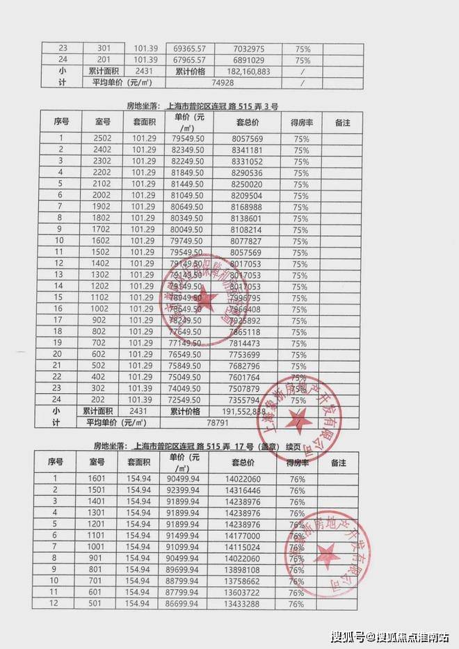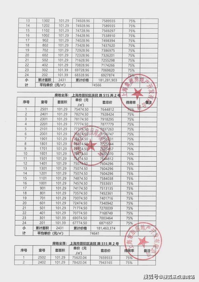 一房一价表