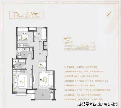 建面约78㎡2房1卫户型,做到了双开间朝南+南北通透+卧室带飘窗+动静分离,功能区划分、动线都非常清晰。