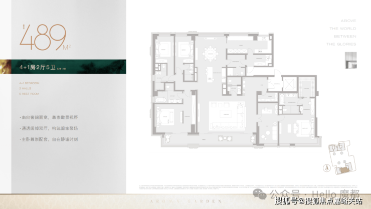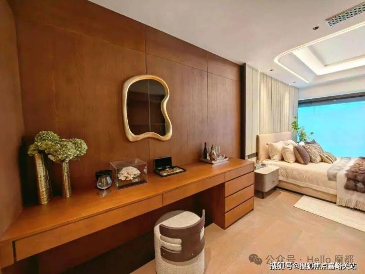 豪华主卧套房设计(户型为全套房设计),该户型位于南塔高区,大横厅设计,明亮、通透,南向俯瞰风貌别墅区,视野开阔。客餐厅南北分布,动静合理,超大家政空间满足高端居家生活及收纳需求。