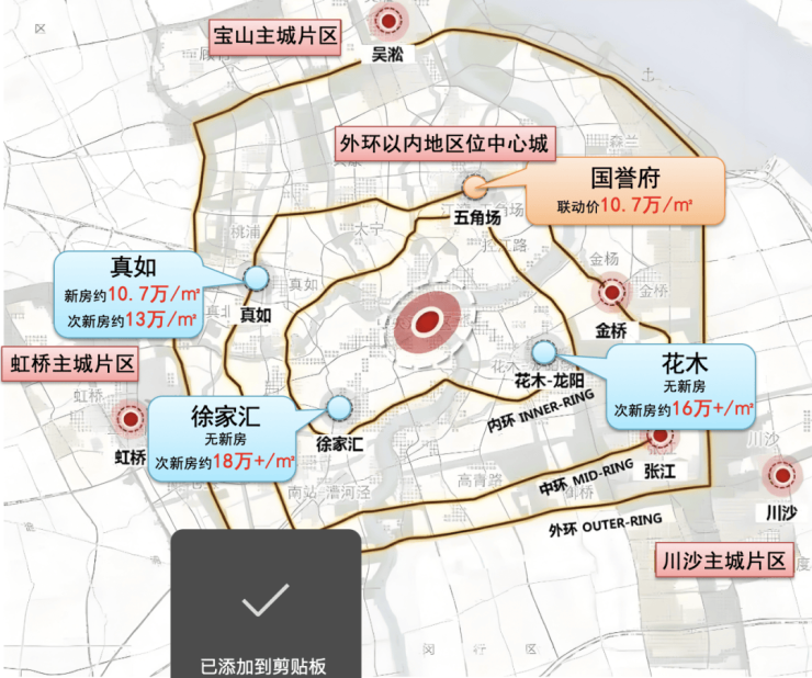 徐家汇、花木板块次新房价格普遍在16万+/㎡,真如的新房价格逼近11万/㎡,次新房价格普遍在13万+/㎡,而五角场的纯新盘“国誉府”,联动价仅有10.7万/㎡,绝对的价格洼地!
