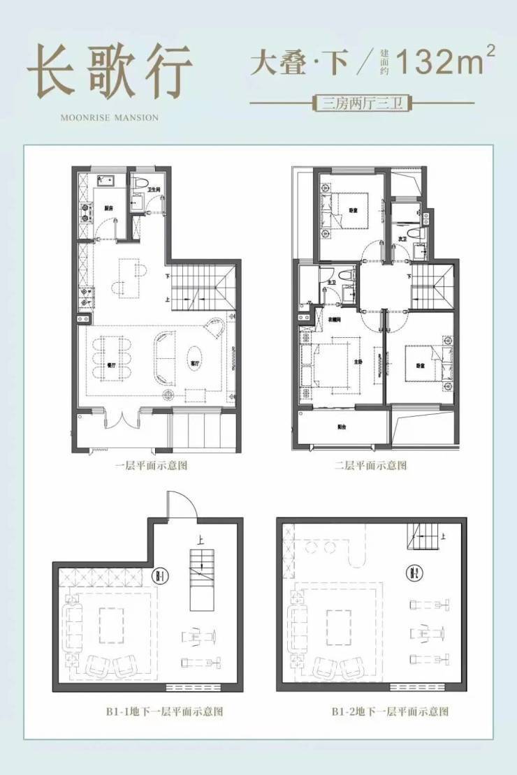 下叠(装修): 附带30-40㎡花园,上层有约10㎡露台,一楼面宽可达6.7m,下层附带近40㎡地下室(层高5.3m)。