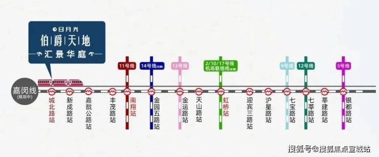 嘉定双轨交项目,距离11号线嘉定北站800米、嘉闵线(在建)嘉定北站约650米,日月光伯爵天地·汇景华庭