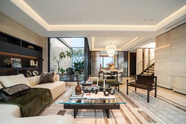 下沉式客厅的挑高空间里,茶吧岛台随时准备迎接派对。就连保姆间的智能马桶都透着体贴——所谓理想之家,就是让每个角落都被温柔关照。