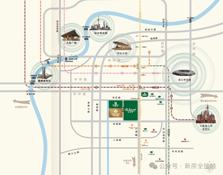 项目距离外环约1.5km,东侧紧邻沪南公路和在建的18号线(预计2020年通车)首先康桥东接迪士尼国际旅游度假区,北接联洋世纪公园,距离陆家嘴约12公里。