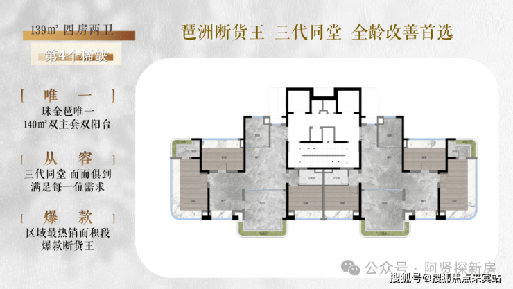 ▍首开楼王尖货,抢占琶洲南“头等舱”✓ 保利天奕首推地块为02地块,最大面积最完整地块,包含中轴景观,最宽楼间距,以及最舒适的楼栋空间。✓ 面积段涵盖约122、139、187㎡,都是新规户型,均为南北对流双阳台四房,专梯入户,低密纯粹,非常值得期待。