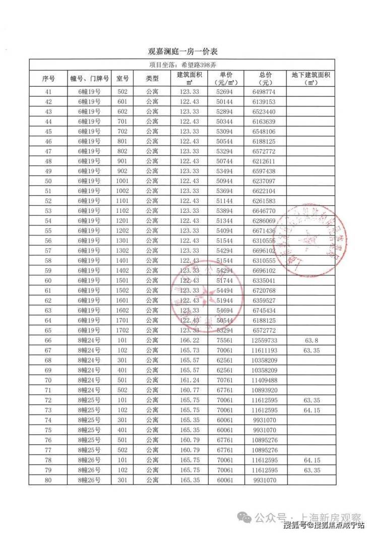 往下阅读项目一房一价表!
