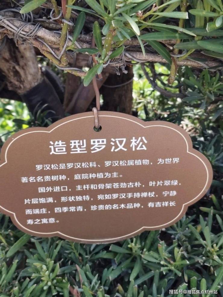 小区内同样种植了各种造型的罗汉松,每一株罗汉松都专属定制了树铭牌,明确树种名,源地及观赏价值等。这一幕,仿佛是漫步在植物园或者名贵的园林苗圃区。