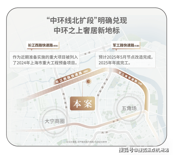 中环线北扩段明确兑现,军工路快速路25年开工,长江西路快速路列入上海市重大工程清单预备项目,快速链通城心,随着中环线北扩段的政策明确,淞南将正式进入中环时间。未来经逸仙高架,进入南北高架、内环高架、中环高架,可快速链通南北上海;多维立体路网全面升级,未来区域价值再攀新高。