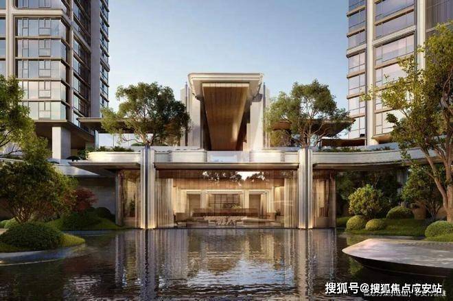 “回归之境”以3500㎡下沉水苑为核心,汇聚会客、泳池、茶室等多功能空间,形成仪式感十足的社区舞台。