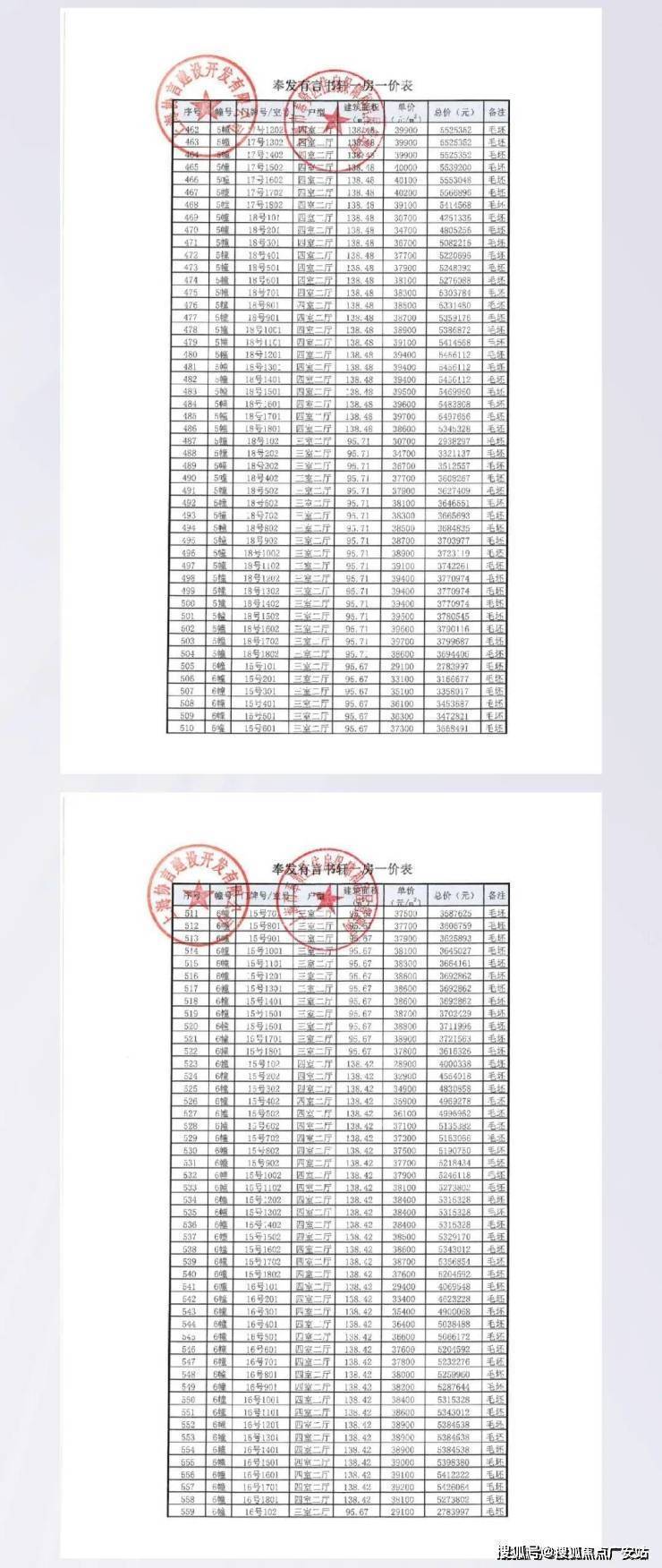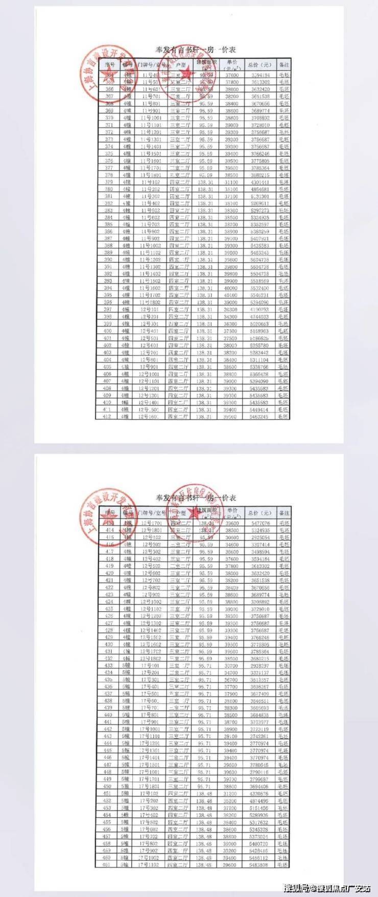 PRO全维升级荣耀回归一房一价表已公示: