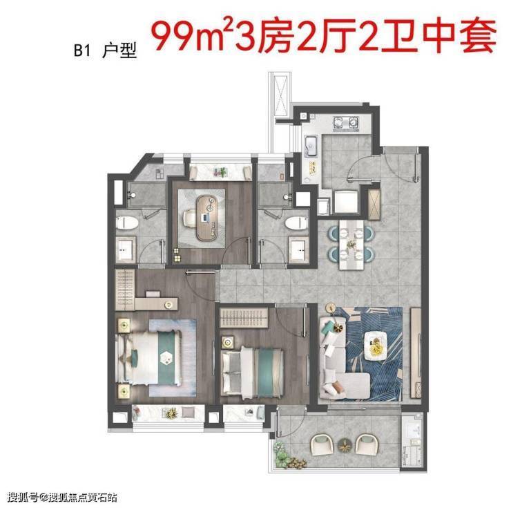 99平三房,参考总价554-585万