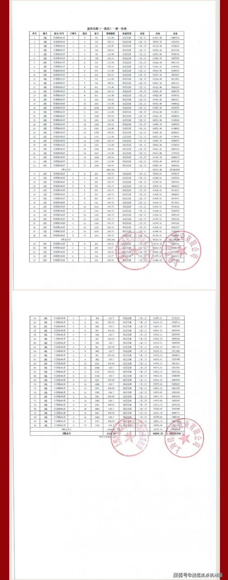 中环麓岛项目一房一价表: