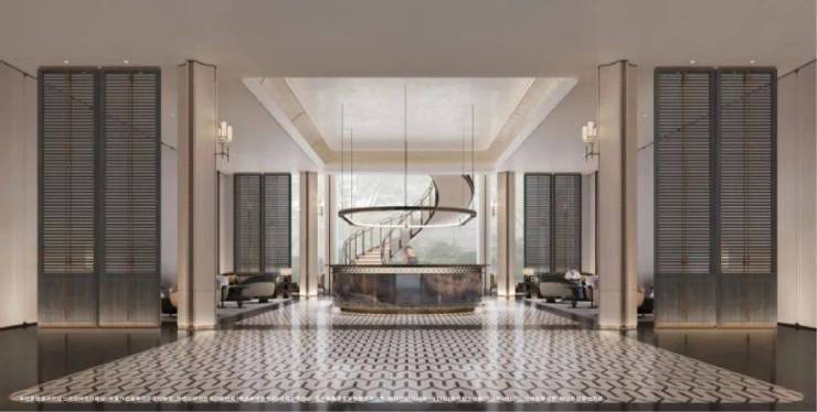 ✅✅招商臻境-源上售楼处电话:400 - 1010 - 064✅✅精装地上大堂,地面的石材拼花造型,墙面的石材背景,将静奢海派的艺术展现的淋漓尽致。
