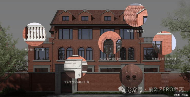 4、延续玖里最受欢迎的现代复古建筑风格,同款砖艺与屋面瓦材,随处可见天然石材整石雕刻工艺,新一代玖里系水岸风貌作品