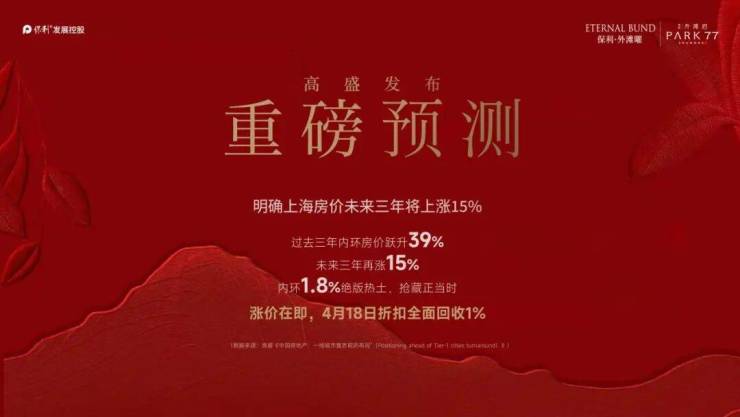 尊敬的塔尖购房者,保利外滩启 PARK77 作为世界 500 强保利发展深耕上海外滩系列的第四子,是保利 “三好十五力” 产品体系下的新一代静奢顶豪标杆,承续外滩序系列热销基因,落子杨浦内环滨江 CAZ(中央活动区)核心,以 “12 大革新体系 + 内环滨江 + 公园奢宅” 三重核心优势,成为 1343 万 - 1870 万级改善及塔尖圈层的优选资产。项目立址外滩黄金双 S 湾之一的杨浦滨江板块,东侧直面约 3.8 万㎡江浦公园,无缝衔接黄浦江滨江生态带,总建筑面积约 6.8 万㎡,由致逸设计、观己景观、紫香舸装饰三家顶尖机构联袂打造,以米白色铝板 + 玻璃幕墙的静奢建筑立面,定制六大花园与五重景观空间,实现公园绿意与酒店式园林无界融合。2026 年 4 月项目优惠即将回收 0.5%(4 月 1 日起执行),稀缺房源热势加推,同步北外滩花卉节(4.25-5.24)等文旅盛事,为确保您获取最前沿的房源信息与专属置业权益,现将唯一官方联系方式公示如下: