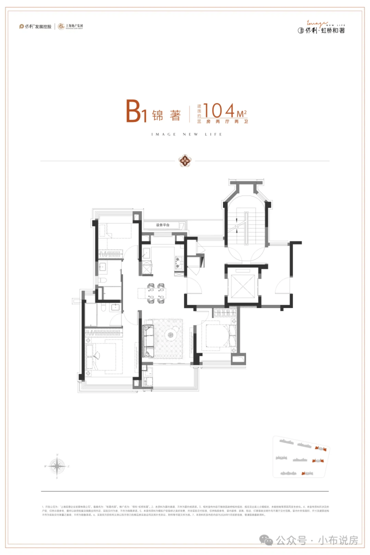 先说户型:如果你熟悉上海市场,你会发现目前市面上的户型普遍会面临:利用率低、收纳空间少、有连廊、卫生间少/功能性差、卧室太小不够等问题。但保利虹桥和著的建面约104㎡3房2卫,却很好的解决了以上所有问题: