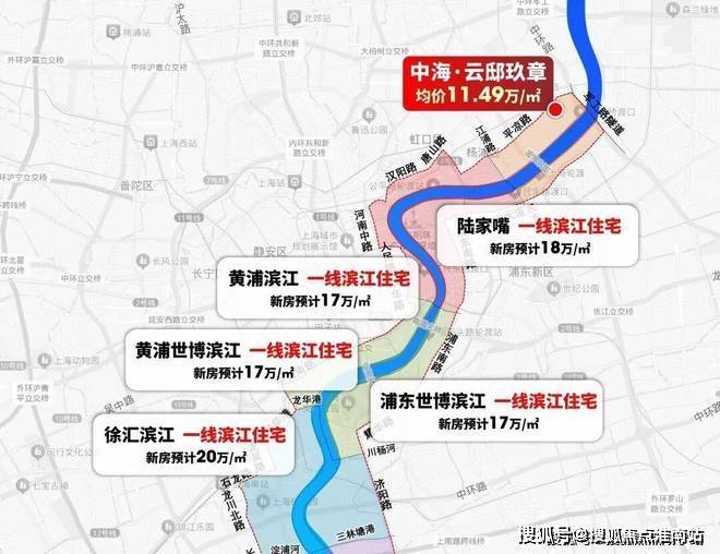 相较于同级别内环滨江段新盘价格梯度,黄浦滨江17万+/㎡、徐汇滨江20万+/㎡,中海·云邸当前均价11.49万/㎡的价格存在不小的优势。
