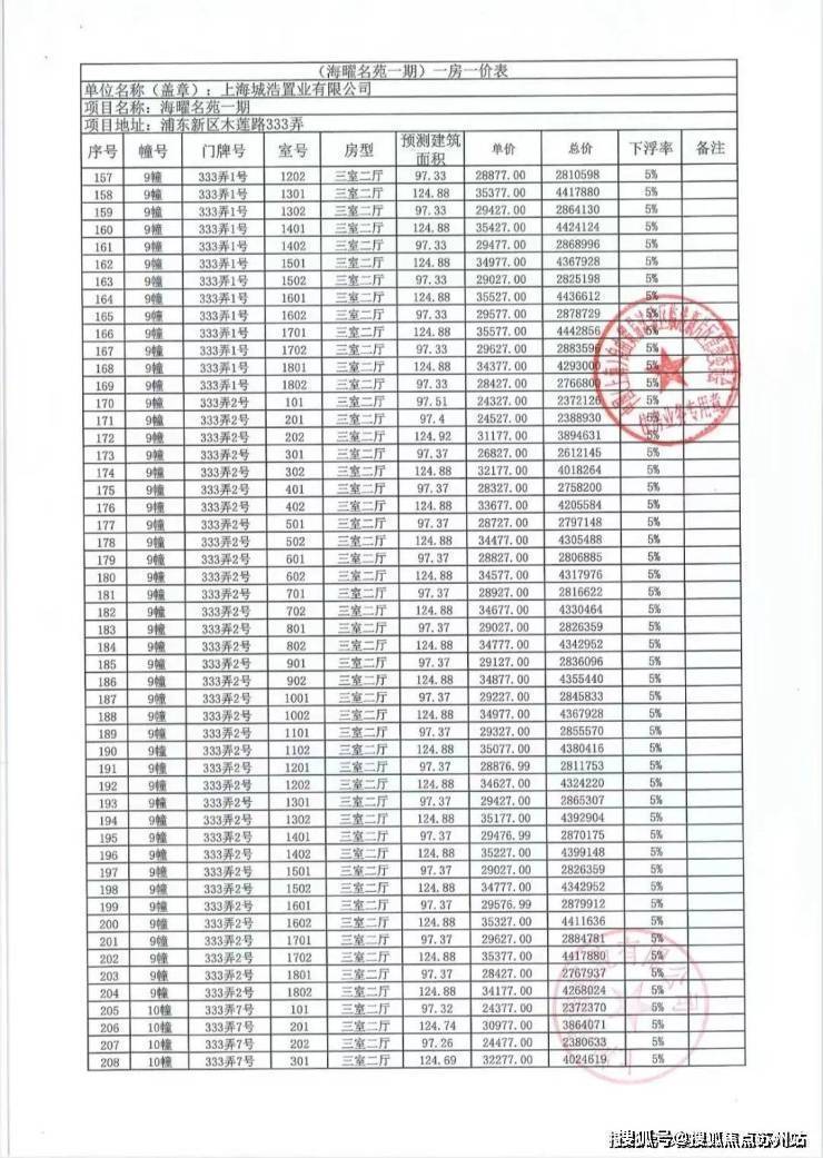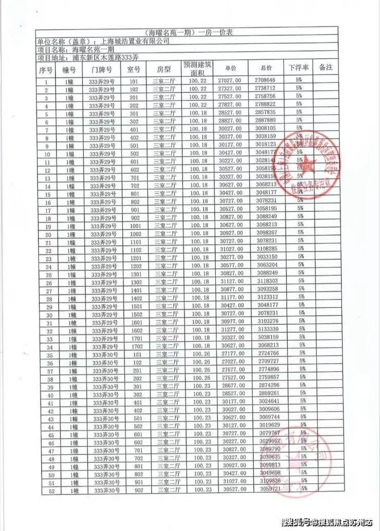 一房一价表