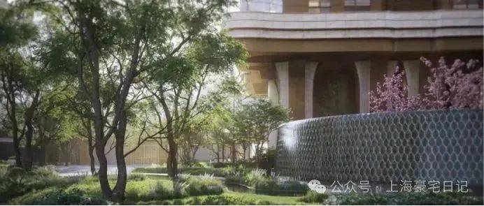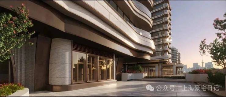 约270°蝶形阳台呼应江水曲线,波浪形立面与金属包边设计,将黄浦江流动感融入建筑;