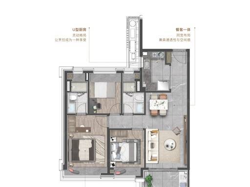 三开间朝南,全明通透,U 型厨房