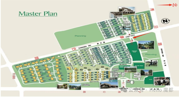 一期:共三十栋别墅(八套联体别墅)2000年全部落成。