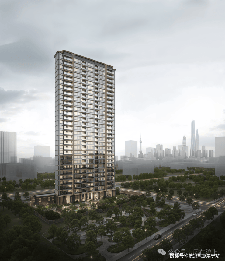建筑外形上,采用海派现代风格,蓝灰色玻璃、仿铜色铝板、深色石材搭配,将绿城产品的高辨识度再次呈现。