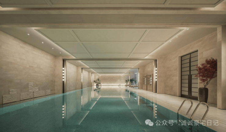 再比如,总面积高达约3000㎡的泛会所空间。包含地上1200㎡位于架空层约6米挑高空间与1800㎡的下沉式会所。考虑到项目总共只有324户,会所浓度在上海名列前茅,覆盖有作家书房、游泳池、瑜伽室、健身房、私宴厅等逾10种功能空间。